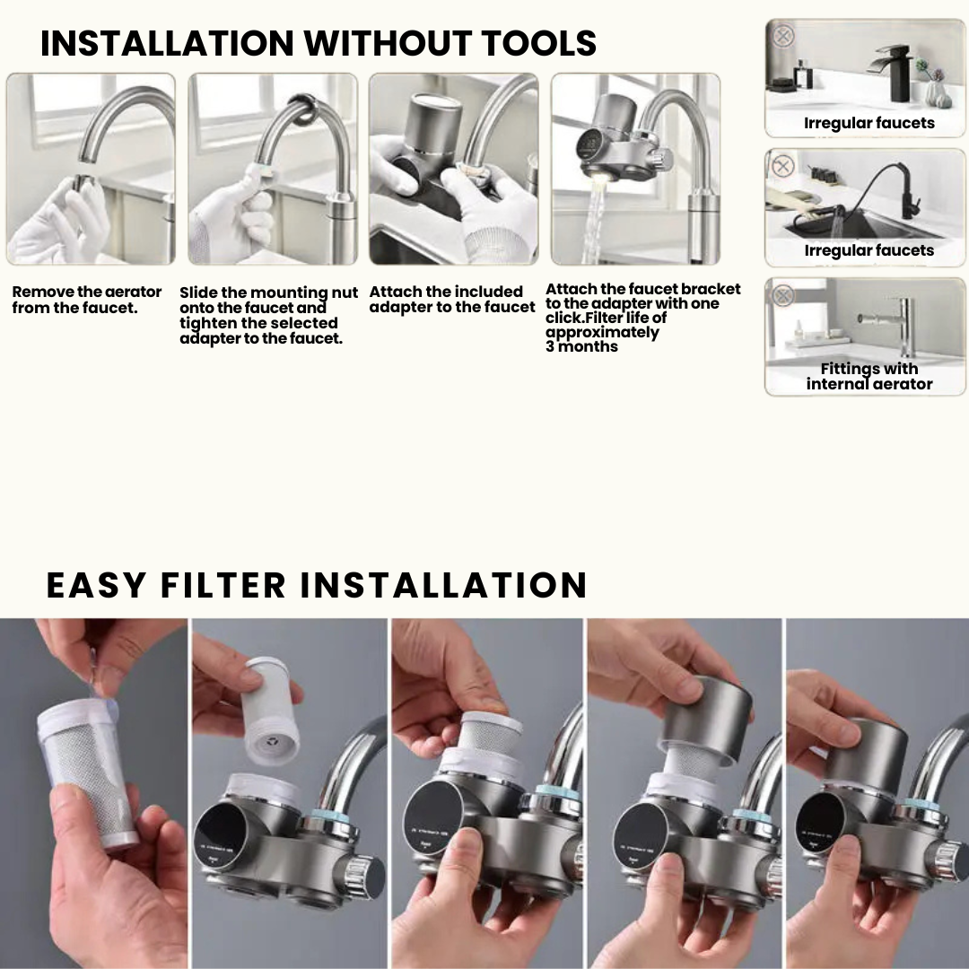 AcquaSense™the faucet filter that combines sleek design and intelligent monitoring. Its digital LED screen lets you track both water temperature and filter life, so you always know exactly what’s flowing from your tap.